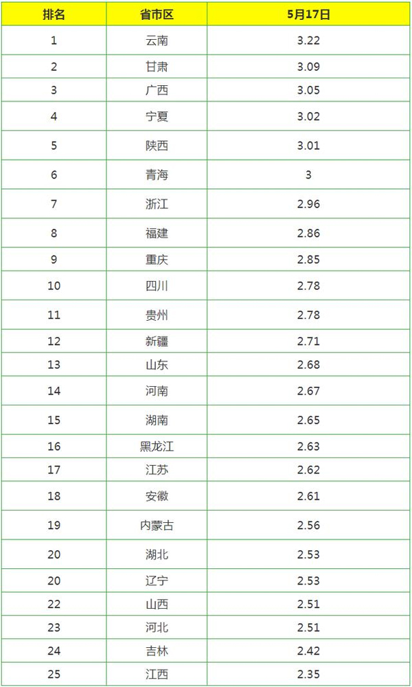 今日國內各產區雞蛋價格排行榜如下(價格為出場價,單位為元/斤):